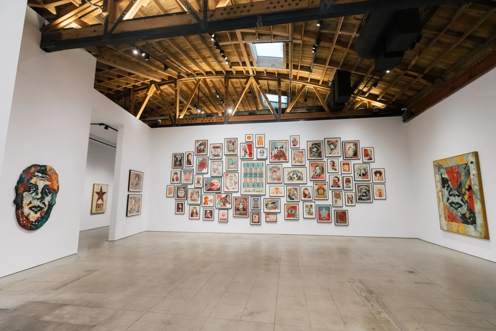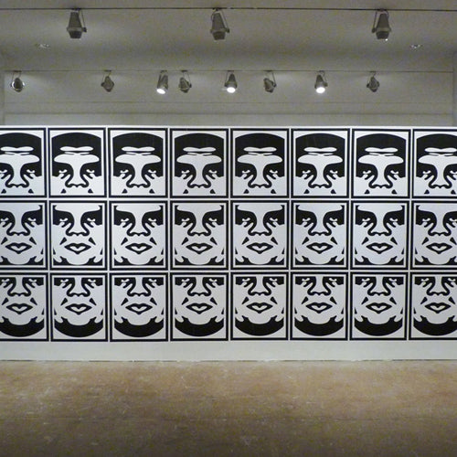 While street art remains at the core of his identity, Fairey has expanded his practice to encompass fine art prints, paintings, commercial design, public murals, and installations. His studio work often features meticulous collage elements, intricate stencil work, and his signature red, black, and cream color palette.